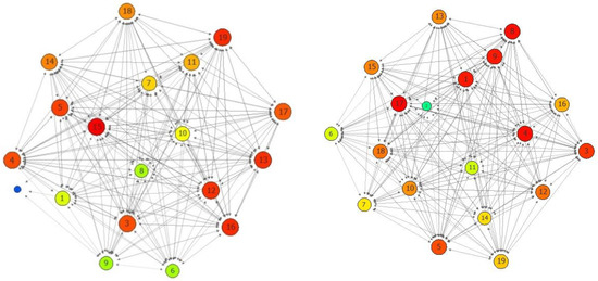 The network analysis emphasizes the degree of betweenness and centrality of the variables, amplifying the correlations. The social network analysis (SNA) technique is intended to depict a social structure encapsulating different individuals and in various contexts or organizations (commonly referred to as nodes), which are connected or tied by a shared or common variable or various kinds of interdependencies ranging from kinship relationships, beliefs, and common interests [75]. This study used two typical SNA approach measures out of the many known [75]. The degree of centrality and betweenness are the two methods used. The betweenness illustrates the amount to which a node or variable lies among other nodes or variables in the network, and centrality assesses the critical power of nodes depending on how well they connect the network [76].