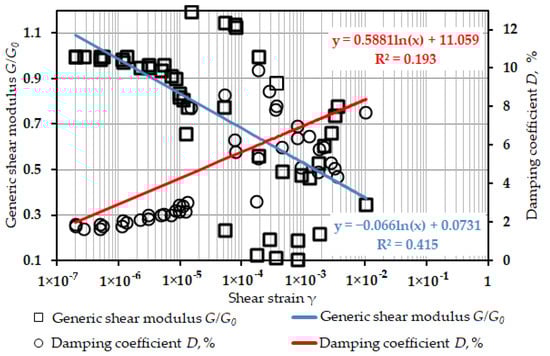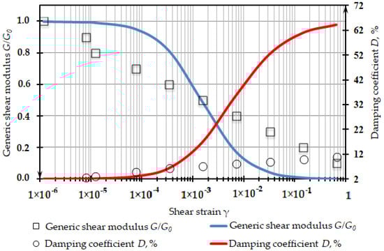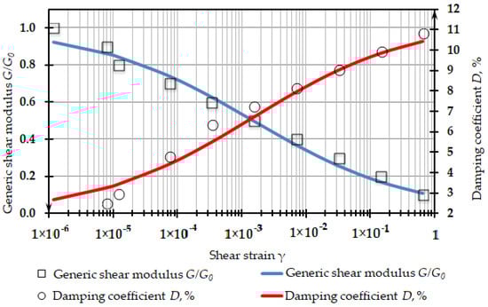 - The empirical linear dependency of and D on shear strain γ proposed in this study could be further used for the dynamic analysis of structures on a soil base modified by the DSM method for preliminary calculations or by scenarios with data of direct field investigation.