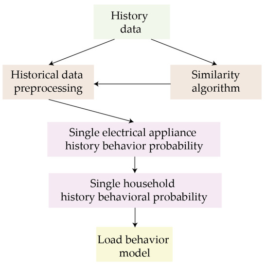 To extract the load-behavior model from historical data, the usage of an algorithm able to detect historical days with consumption characteristics similar to those of the forecasted day increases the prediction accuracy (Figure 1) [20]. The similarity algorithm compares both external environmental factors, such as weather conditions (air temperature and relative humidity, wind speed), weekday type (weekday/workday), events (e.g., holiday), and internal household factors, such as family structure and residents’ behavior.
