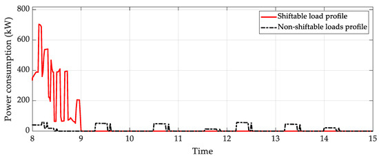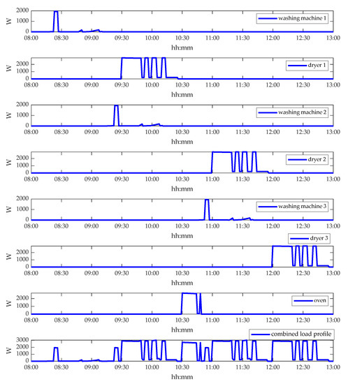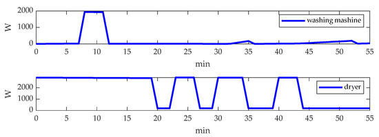 - Shiftable/burst loads, consisting of devices that operate for a fixed duration and can be started/stopped within a specific deadline (e.g., dishwashers, washing machines, clothes dryers, electric vehicles);