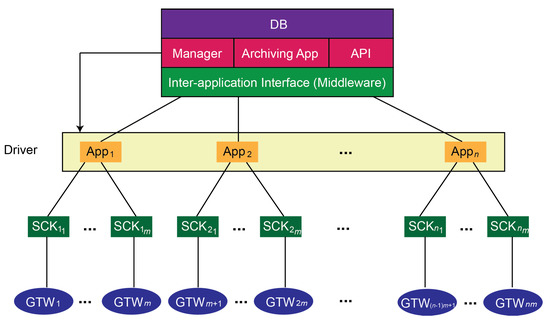 The authors of Ref. [37] present a system for energy monitoring in residential homes using sensor networks (Figure 4). For energy-consumption monitoring, a series of wireless smart-power strip nodes interfaced by a sink node are used. A gateway module implementing a data-stream management system (DSMS) for real-time data processing is connected through the RS-232 interface to the sink node. A DB server (PostgreSQL) is used to store the data, which can be visualized as trend charts through a web server (Apache running PHP). Each monitoring node has the ability to measure and send the energy consumption of the connected appliance within one second. The DSMS facilitates the aggregation and saving of the data into DB tables with various time granularities (month, day, hour, minute).