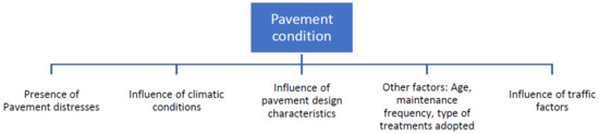 These road distress factors are influenced by various explanatory variables, including traffic conditions, environmental factors, design features, and similar [4]. The main factors affecting pavement condition are shown in Figure 1. Due to the distinct nature of the these factors, the pavement conditions on different road sections are heterogeneous, adding uncertainty in assessing road performance [5].