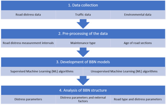 This study was carried out based on road data collected from 32 road networks in the UAE from 2013 to 2019. The major steps followed in this study are given in Figure 3. Details of the data and the method of analysis are presented in the following subsections.