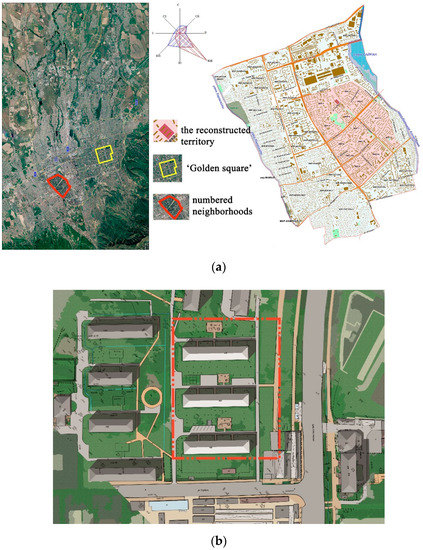 These problems have a common root in the period of large-scale housing construction after the devastating consequences of the Second World War. Today, many aspects of residential houses built in standard series, which were designed all at once to efficiently solve the problem of population resettlement, no longer meet modern requirements or are unable to provide the required level of comfort [11,13,14]. In cases where they can be demolished, given that they are dilapidated housing, renovation is carried out on the vacated plots, including the building of new residential housing. However, there are residential buildings in the capital that cannot be demolished. These require reconstruction and the landscaping of residential yards.