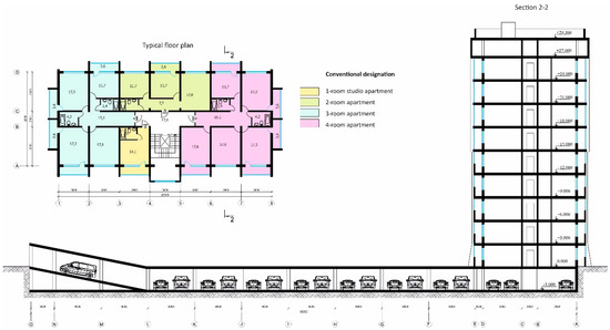 Underground parking with a proposal for the new development of a 9-story residential building (Author’s material).
