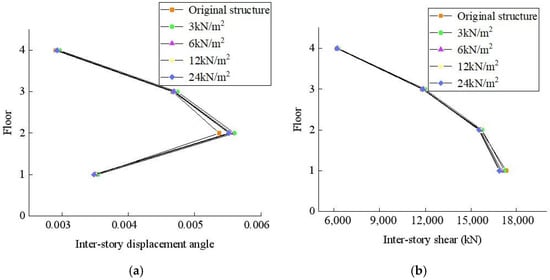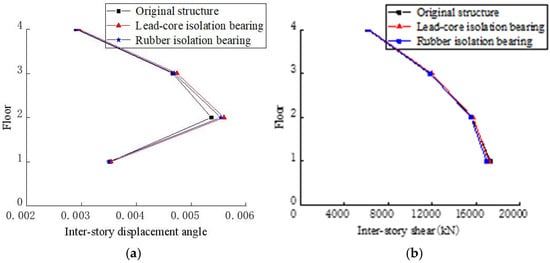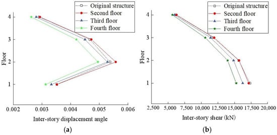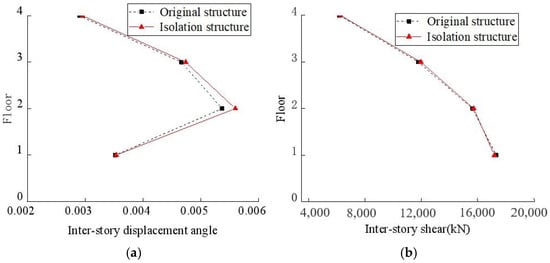 (a) Inter-story displacement angle and (b) inter-story shear force.