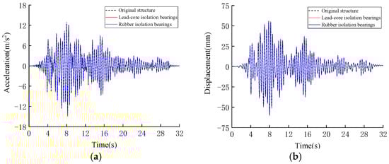 Time−history curve of the structure top (a) acceleration and (b) displacement.