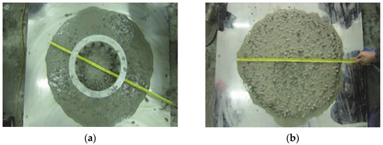 Workability test of RASCC. (a) Slump flow; (b) J-ring flow.