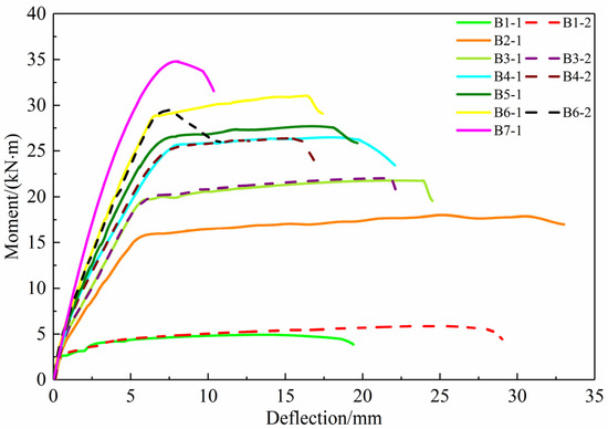 3.2. Bending Moment–Deflection Curves