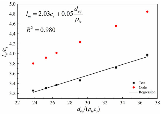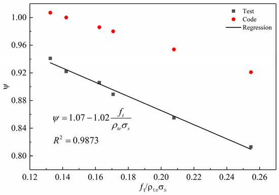 Using Equation (7) as a reference, we ran a regression based on the measured values of ψ and ρteσs for the RASCC beams and obtained the results shown in Figure 11.