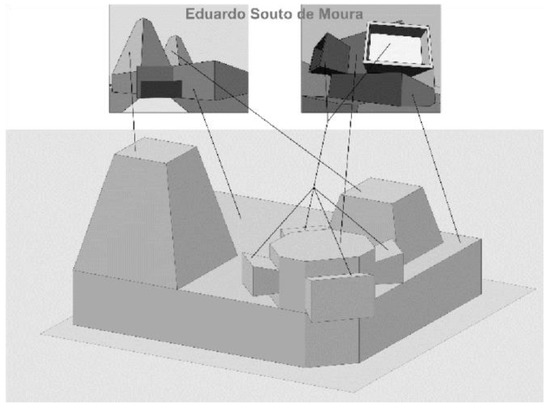 A central element of the presented design philosophy is the belief that the aesthetic experience of style depends on an individual’s ability to visual perception in identifying a structural object [15]. Generally, only a person who has developed complex visual skills will be able to create a complex form of a 3D prototype model [16]. Figure 1 shows such an example of the prototype model of building style inspired by two built Eduardo Souto de Moura projects. It is known that visual communications concepts cannot be taught directly. Therefore, the methodology presented in this paper encourages the discovery of principles of visual design and not learning about them directly [17].