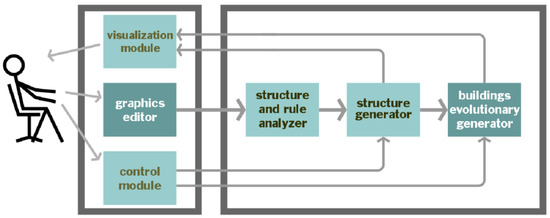 After many attempts at the esthetic evaluation of architectural objects with the use of a computer, there is also the opinion that the aesthetic value of artifacts is related to their ability to provide recipients with stimuli enriching their aesthetic experiences. Research on a model capable of reproducing the mind’s reaction is much more challenging than generating artifacts [35]. In the presented approach, one of the most important factors of the automatic aesthetic evaluation based on the prototype model created by a designer is the use of the aesthetic assessment of the representativeness of each generated building in the category meeting the designer’s preferences [36]. Therefore, during the evolutionary process, the fitness function to evaluate aesthetics should be performed not only by the software but also by the designer [37,38].