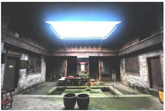 In terms of construction materials, the foundation is made of stone. The high platform is built to bear the weight of the upper wall and isolate the damp air. The walls are almost rammed earth walls adapted to the local weather that is warm in winter and cool in summer. They are durable and solid, economical and environmentally friendly. Generally, the roof is tiled, which is conducive to drainage. The structure is mainly the wooden frame, and the wall is directly used to bear the load. It has the characteristics of simple craftsmanship, good seismic performance and clear structural logic. The Dragon House shaped the basic pattern of the patio-center and the unit type, and the halls are connected by the patio. The architecture with good space permeability and meets the requirements of ventilation and lighting (Figure 11). As shown in Figure 13, the interior of the Dragon House is bright and spacious. The relationship between humans and nature is well coordinated in the dense living environment.