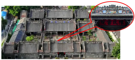 Like the Lingnan people, Cantonese buildings are open and innovative, inclusive, enthusiastic and cheerful, pragmatic and truth-seeking. Chen Clan Temple (1888–1894) in Guangzhou, also known as Chen Clan Academy, was constructed during the late Qing Dynasty. Because of its prominent regional cultural characteristics and aesthetic orientation, it is referred to as the “Cantonese Architecture Model”. It is famous for its large scale and gorgeous decoration. The temple is a relatively well-preserved and representative example of folk architecture of the late Qing Dynasty in Guangdong. As shown in Figure 14, the main body of Chen Clan Temple follows the traditional layout of axisymmetric and clear primary and secondary elements of ritual architecture [29], and in the comb-style layout, the Lingnan characteristics are interspersed. Most of the temple buildings are single-story wooden structures. Lingnan is in the subtropical and tropical region with short winter and long summer, and the climate here is hot. The buildings in the Lingnan region are usually single-story wooden structures, so the shapes in the architecture are transparent and open, simple and light. The walls can be able to reduce fire risk, and also called the “horsehead wall” in the Chen Clan Temple. Besides, the outer walls made of blue bricks are high, and the interior rooms and halls are mostly connected by corridors. Most of the ventilation structures are shown in Figure 15. Removable lattice fans are used to ventilate the hall. In this way, halls, patios, and corridors are integrated together to form a large space that is outside, closed and open inside. This is the inheritance and development of the traditional features of a Lingnan architectural plane and space layout. It is beneficial for creating a good enclosure for the courtyard space. Furthermore, corridors are usually arranged between two buildings or two viewing points and become an important means of spatial connection and space division. It not only provides a sheltered place for keeping the interior shady all year round but also as the traffic connection. In short, corridors play an important organizational role in the arrangement and viewing of the landscape.