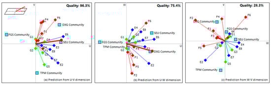 In recent years, nine communities have strengthened public awareness of DPM, added food and goods, and renovated houses and infrastructure. The overall waterlogging resilience of each community have improved significantly. Through the BP neural network prediction method, the predicted values of the future waterlogging resilience are calculated. Then the predicted value data are input into Visual PROMETHEE software, and the rankings of waterlogging resilience characterization indicators for the four communities are obtained in the following order: the DXG community (0.073), the SEU community (0.057), the TPM community (−0.004), and the FGS community (−0.126), as shown in Figure 10.