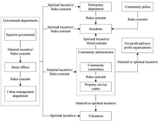 When the waterlogging occurs, community residents and other organizations in the community are the protection objects. Whether they participate in the waterlogging control and how actively they cooperate with the community depend to a large extent on their own interests. Most community residents weigh the benefits and costs to make decisions [61]. Therefore, the following incentives and constraints should be considered on these two stakeholders: