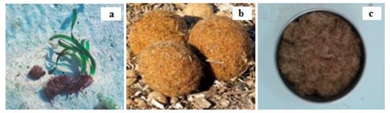 (a) Bundles of PO leaves; (b) PO balls; (c) Posidonia oceanica fibers.