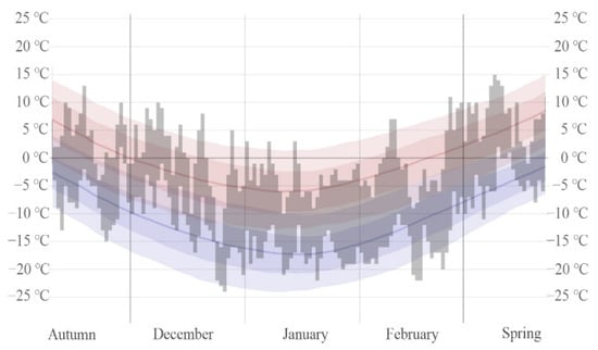Winter temperature map of Shenyang for 2021 (data source: https://zh.weatherspark.com/ accessed on 1 February 2022).