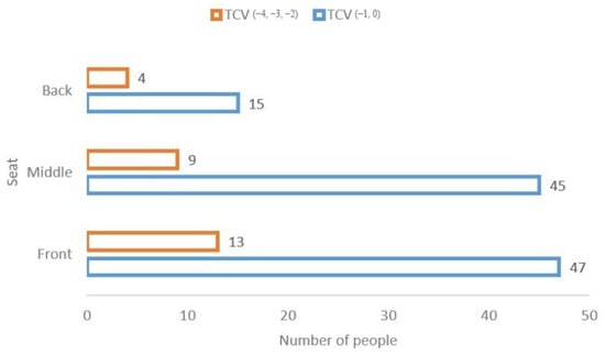 Figure 21 shows that the subjects in the front area had the highest thermal comfort, which is consistent with the final evaluation results of the entropy weighting method. This implies that the entropy weighting method can be used in the subjective analysis of thermal satisfaction.