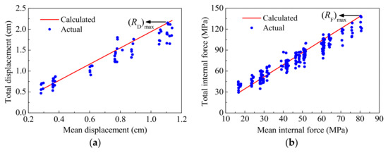 where and are the mean and mean square values of the global DVC of displacement, respectively; and are the mean and mean square values of the global DVC of internal force, respectively.