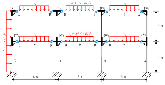 Due to a large number of beam–column pairs in Table 1, it is impossible to display all data. Only the six sets of data in Table 3 are presented to illustrate the analytical procedure. According to Section 2.2.1, the stiffness and moment capacity of the connection are converted into the fixity-factor and moment capacity coefficient, and the beam length is assumed to be 6 m. It is noted that this assumption will not affect the applicability of the conclusion, since the two connection properties analyzed here are relative values.