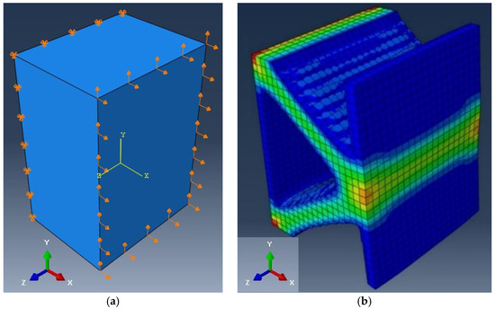 Optimized shapes: (a) general initial shape and boundary condition of ABAQUS model; (b) optimized shape after running the analysis.