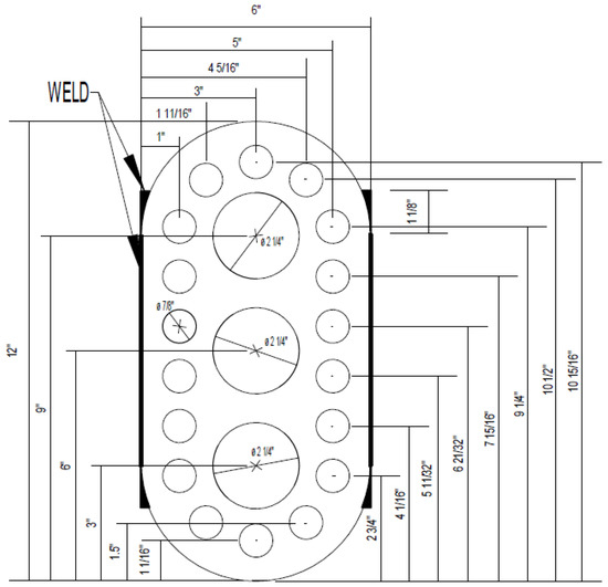Several geometries were modeled (and progressively modified) to obtain a shape that could conform with the stated criteria for this study. An important issue was the control of large and highly localized inelastic strains that could lead to early low-cycle fatigue failure. The approach chosen was to develop multiple inelastic strain zones instead of one or two highly localized inelastic strain zones. If low-cycle fatigue failure is initiated at one of these multiple zones, the result would not be a sudden and complete failure. The strategy used was to employ a combination of circular shapes to achieve multiple yield zones. Circular openings have the advantage of reduced stress (strain) concentration (compared to sharp corners) and can be manufactured relatively easily through drilling.