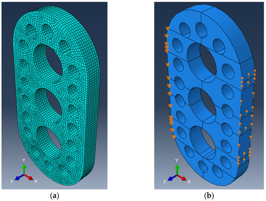 FEM model of the MYZ device: (a) mesh; (b) boundary conditions.
