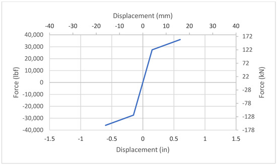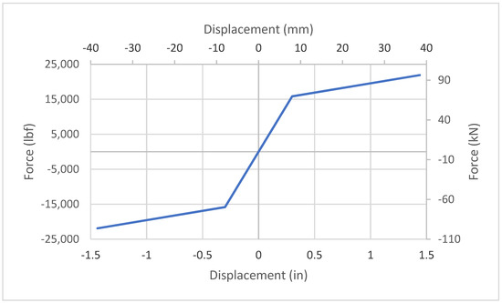 Bilinear load-displacement response for vertical movement in MYZ connector—scaled for a 60% building size.