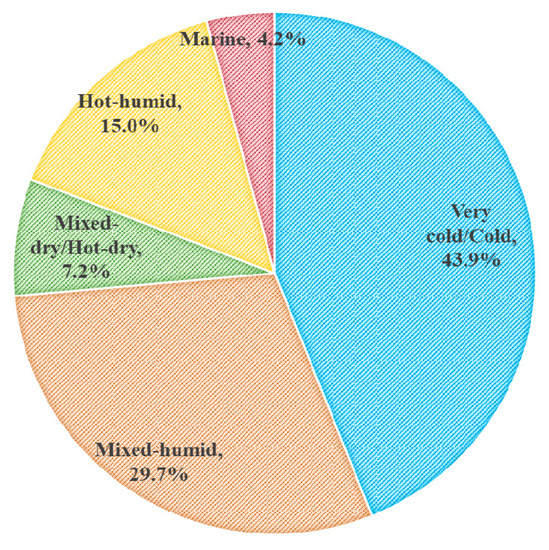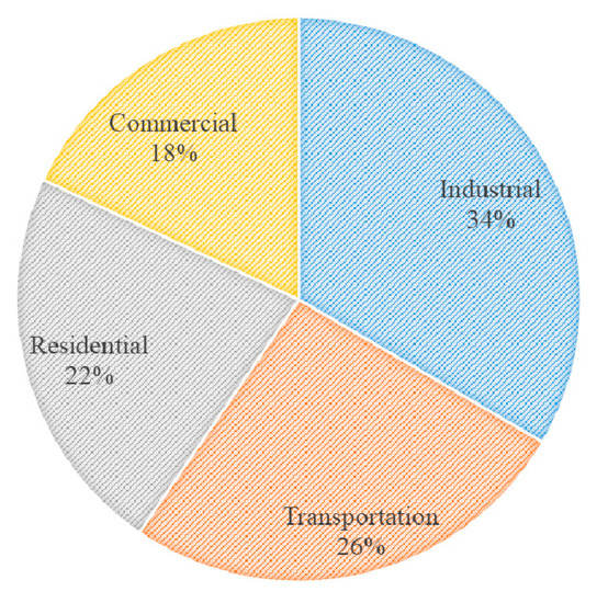 Growing world energy use has raised concerns about supply, exhaustion of resources, and environmental impacts. Residential and commercial sectors were responsible for about 40% of total energy consumption in the USA in 2015 [1]. Reducing even a small amount of this energy can lead to desirable environmental effects and financial benefits. The energy consumed in buildings can be reduced by using more energy-efficient appliances and reducing the energy loss, particularly through the building envelope. In 2013, U.S. primary energy use was about 17% of the world’s total energy consumption (Figure 1) [1]. In addition, residential and commercial sectors (Figure 2) accounted for almost 40% of the total energy consumption in the US in 2015 [1]; this proportion is between 20–40% in developed countries [2]. Residential and commercial sectors account for approximately 22% and 18% of total energy consumption, respectively. In addition to the more comprehensive reports, such as the Annual Energy Outlook (AEO), the Energy Information Administrative publishes more detailed reports on residential buildings, including Residential Energy Consumption Survey (RECS). Based on the 2015 report data, air conditioning, domestic hot water, and refrigerators consumed about 45% of the electricity in the residential sector. About 68% of the natural gas in the residential sector is used for space heating. Energy consumption due to space conditioning varies depending on climate zones and the age of buildings. In 2015, the energy consumption of residential buildings in the very cold/cold climate zone was about 45% (Figure 3) [3]. Residential buildings constructed before 1940 use about 54% of their energy for space conditioning, whereas this consumption is about 43% for houses built from 2000 to 2009 [3], indicating the importance of retrofitting the building envelope.