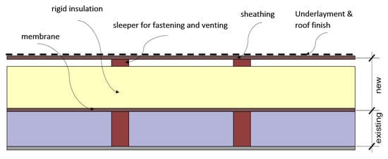 Exterior thermal & moisture management system (ETMMS) details for roof overcoat (adopted from [14]).
