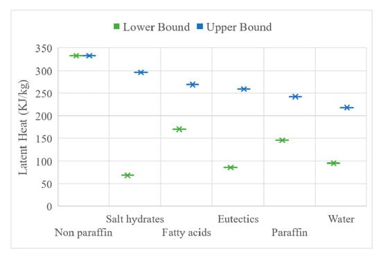 Latent heat for different types of PCM (adopted from [30]).