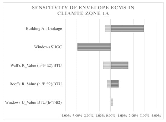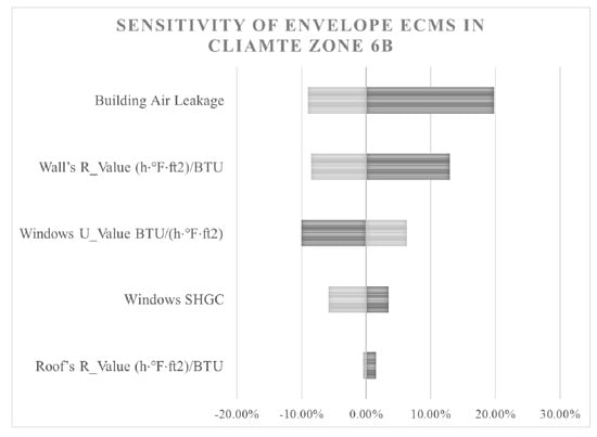 The benchmark residential building is a DOE detached residential building designed based on IECC 2009 for two climate zones. Using the benchmark buildings based on open-access standards such as IECC makes it easier for other researchers to reproduce these models and replicate the results. A sensitivity analysis shows the percentage of energy use reduction against each ECM range to compare the energy-saving potentials between different ECMs. The case study is meant to guide stakeholders in determining the impact of various measures in building energy retrofitting based on the sensitivity analysis. Regardless of the degree of innovation of the retrofit approach, the retrofit is based on improving the thermal performance of the building envelope and manipulating attributes such as the conductivity and solar heat gain coefficient.