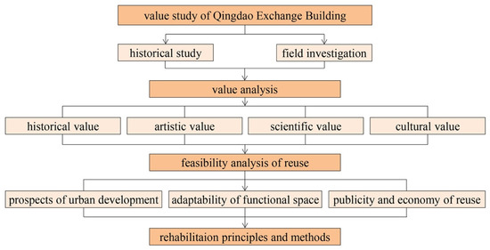 In recent decades, exchanges between China and the West in the field of cultural heritage have become more common. Due to the influence of Western architectural protection theories and the Chinese people’s increasing awareness of cultural heritage protection, greater importance has been attached to the protection of Modern Architectural Heritage in China. In the present study, the former Qingdao Exchange Building was taken as the research object, and the path from value analysis to rehabilitation strategy was explored, which will help to provide an integrated research method for the protection and utilization of the building and lay a foundation for practical work.
