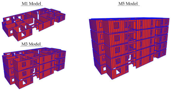 View of the M1, M3, and M5 models developed in SAP2000.