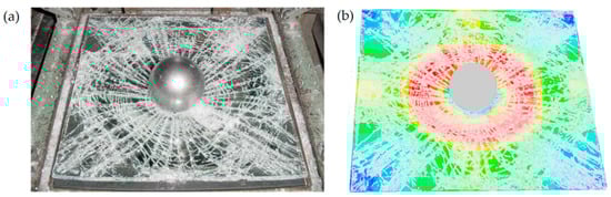 - Pyttel, T.; Liebertz, H.; Cai, J. Failure criterion for laminated glass under impact loading and its application in finite element simulation. Int. J. Impact Eng. 2011, 38, 252–263. [Google Scholar] [CrossRef]