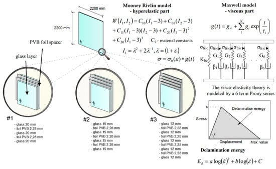 - Chen, S.; Zang, M.; Wang, D.; Zheng, Z.; Zhao, C. Finite element modelling of impact damage in polyvinyl butyral laminated glass. Compos. Struct. 2016, 138, 1–11. [Google Scholar] [CrossRef]