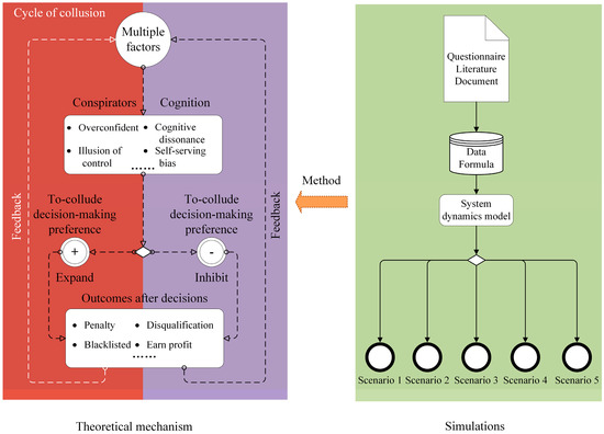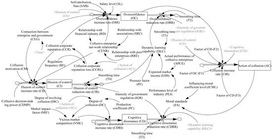 According to cognitive psychology, collusive behaviors can be manifested under the heading of cognitive bias using systematic and random factors. The systematic factors include industrial self-regulation and governmental intervention. The random factors might be business-specific or individual [24]. It is assumed that the cognitive bias influencing mechanisms on to-collude decision making are requisites for manipulating collusive behaviors. This study employs the theories of cognitive bias and complex adaptive system (CAS) to illustrate conspirators’ to-collude decision-making processes. A system dynamics model is proposed, based on collusive subjects’ interaction, which extends the associated decision making from individual behavior ontology to an entire evolution system. Thereby, the complex adaptive outline of to-collude decision making can be better imaged. Moreover, the paper reveals the influencing mechanism of to-collude decision making, describing the causes and effects of conspirator cognitive bias and recommending countermeasures for collusion mitigation. The contributions of this study can be addressed as we provide an insight into the cycle of collusion emergence from a complex system perspective and implies that antitrust authorities can launch carrot-and-stick measures for better regulation.