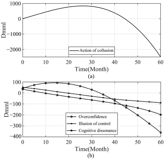 As demonstrated in collusion motivation simulations, collusion motivation, cognitive biases, and collusion action have the same direction. The to-collude decision-making preference will shift to a higher level when increasing the collusion motivation, reflecting an expansionary effect. The explanation can be given by the conspirator’s attribute of profit-driven [62] motivation. Higher collusion motivation refers to higher expected collusion returns and conspirators usually pay more attention to the benefits obtained by collusion and underestimate the risks brought by collusion. As a result, conspirators fall into more serious cognitive biases, resulting in an expansion of to-collude decision making. On the other hand, a decrease in collusion motivation denotes the reduction of expected collusion returns, which restrains the expansion of to-collude decision making and conspirator decision making tends to be rational.