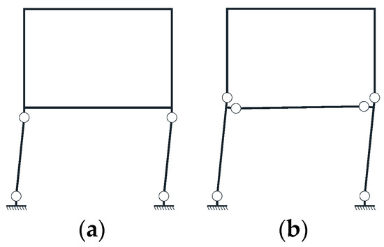 Figure 3. Structural instability caused by plastic hinges: (a) plastic hinges formed at both ends of all the columns on the same floor; (b) plastic hinges formed at different floors on columns and the ends of all the restraining beams.