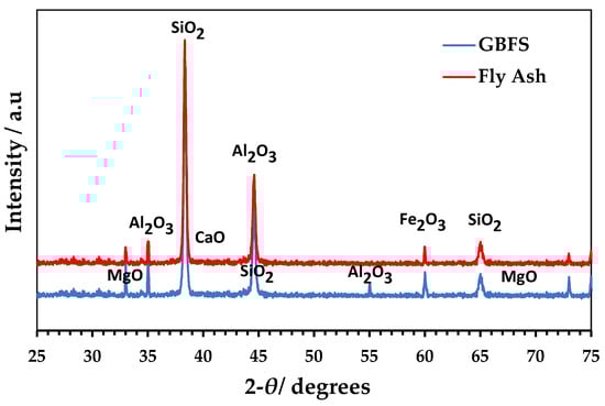XRF spectra of fly ash and granulated blast furnace slag (GBFS).