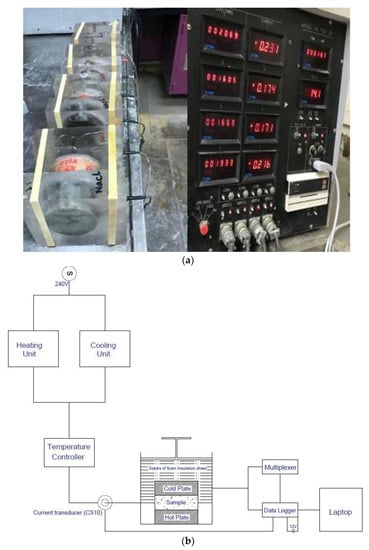(a) Test setup for RCPT, and (b) schematic illustration for a thermal conductivity.