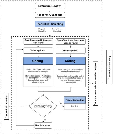 61]. The selection from a defined database is related to the convenience sampling method, where easy access to participants was needed (Bryman and Bell, 2015). The interviews were conducted in steps at the end of each group of interviews, the data were analysed, and the following group of interviews was determined. In GT, the data analysis and collection continue until any additional excerpts do not add to the coding categories, which is referred to as “theoretical saturation” [