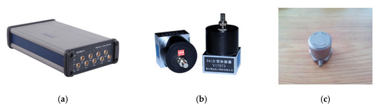 (a) INV3062C1 data acquisition; (b) Pickup 914B; (c) B&K8344 accelerometer.