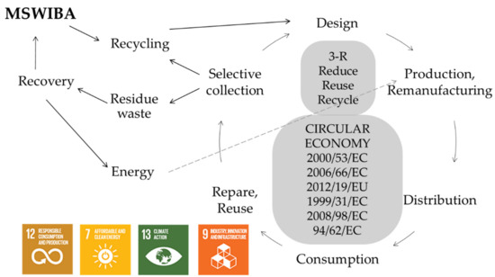 MSWIBA ideal circular economy and attributed SDGs [11,12].