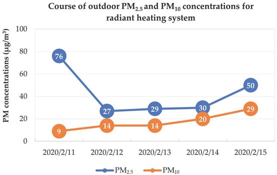 Courses of outdoor PM2.5 and PM10 concentrations for RHS [].