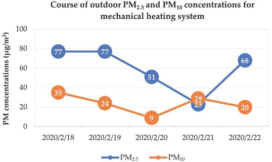 Courses of outdoor PM2.5 and PM10 concentrations for MHS [].