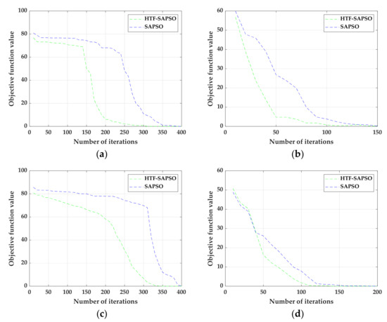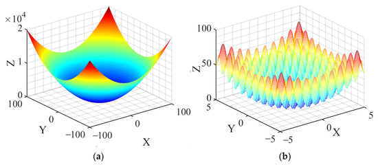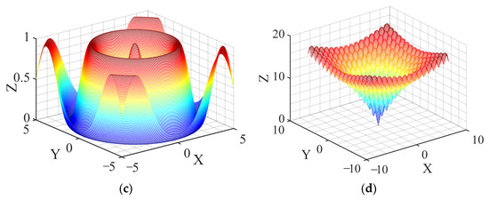 In order to evaluate the actual optimization performance of HTF-SAPSO, four common benchmark functions (Figure 1) are introduced for testing the performance of HTF-SAPSO, portrayed as follows: