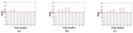 - Damage location identification: The MDS values obtained by solving all the grouped data are averaged, and the damage location judgment is based on whether the MDS values under each node are higher than the threshold.