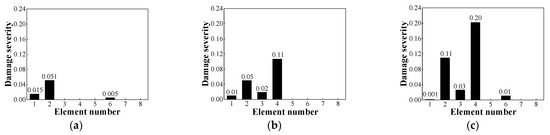 Identification results of damage severity. (a) Case 1; (b) Case 2; (c) Case 3.
